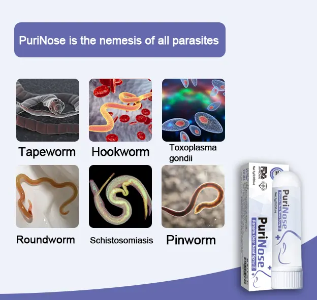 Internal parasites can be transmitted through the bloodstream, affecting the health of the liver, lungs and even the brain, causing systemic diseases. PuriNose's active ingredient passes through the mucous membrane of the nasal passages and enters the bloodstream directly, bypassing the digestive system and inhibiting parasites in the fastest and most effective way.
